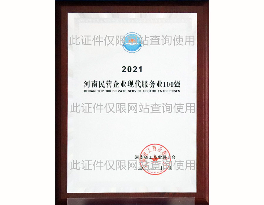 河南省民營企業(yè)現(xiàn)代服務(wù)業(yè)100強(qiáng)