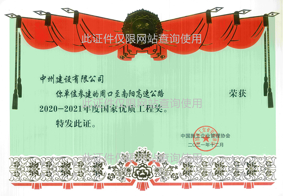 2020-2021年度國家優(yōu)質(zhì)工程獎(jiǎng)